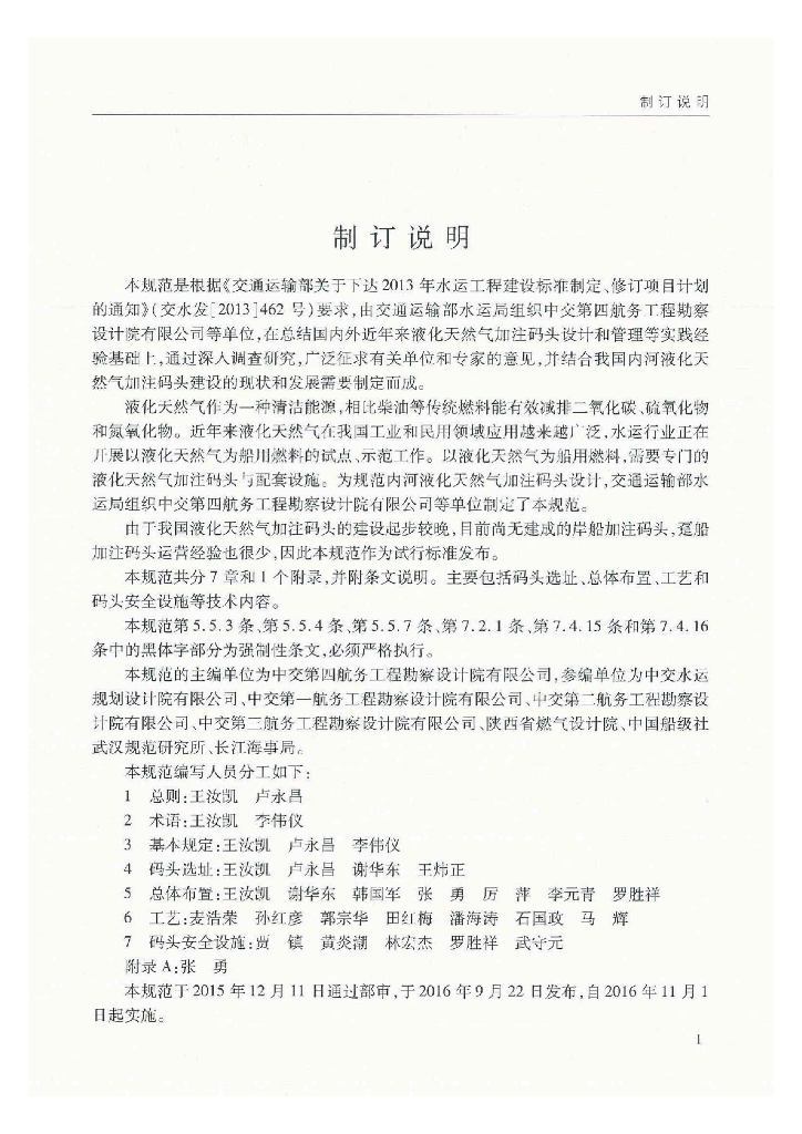 中交第四航务工程勘察设计院有限公司、中交水运规划设计院有限公司、中交第一航务工程勘察设计院有限公司、中交第二航务工程勘察设计院有限公司、中交第三航务工程勘察设计院有限公司、陕西省燃气设计院、中国船级社武汉规范研究所、长江海事局