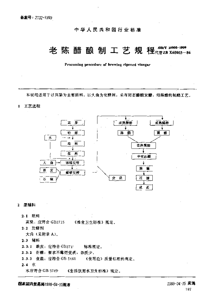 SB/T 10305-1999 老陈醋酿制工艺规程