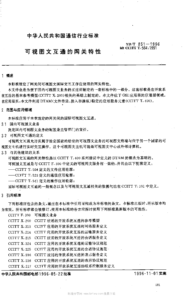 YD/T 851-1996 可视图文互通的网关特性