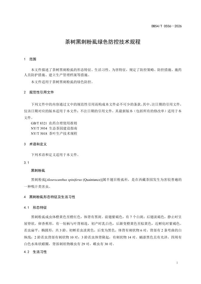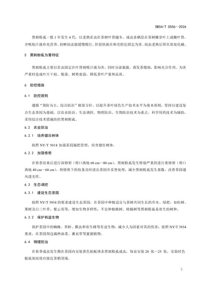DB54/T 0556-2026 茶树黑刺粉虱绿色防控技术规程