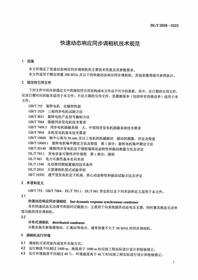 DL/T 2658-2023 快速动态响应同步调相机技术规范