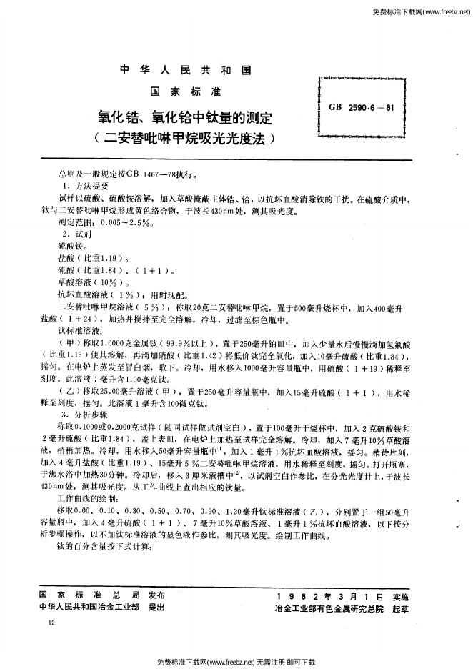 GB/T 2590.6-1981 氧化锆、氧化铪中钛量的测定 二安替吡啉甲烷吸光光度法