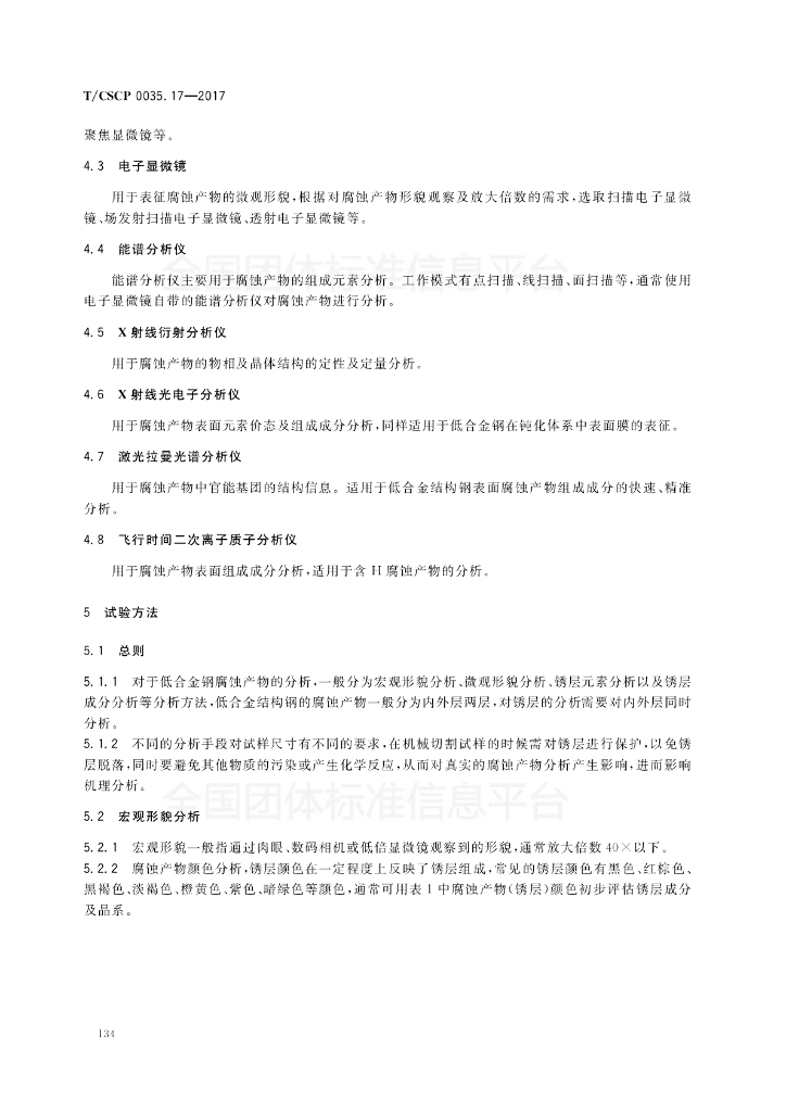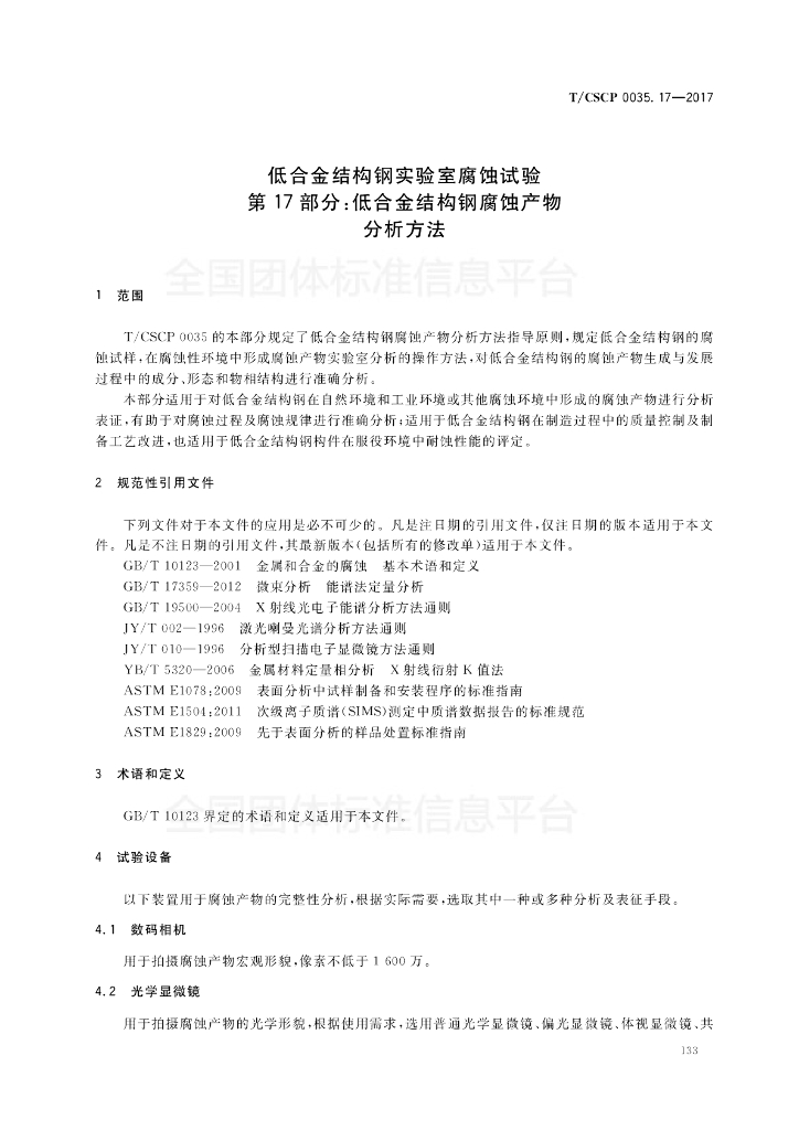 T/CSCP 0035.17-2017 低合金结构钢实验室腐蚀试验 第17部分:低合金结构钢腐蚀产物分析方法