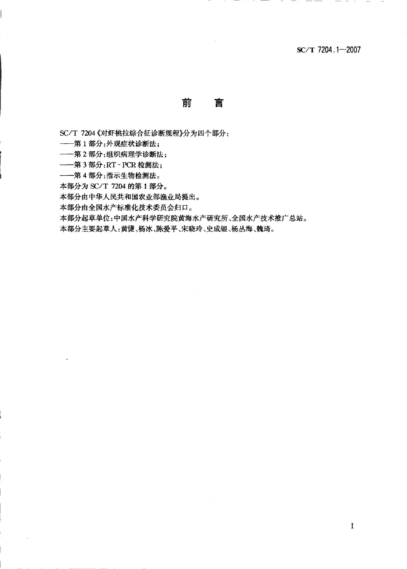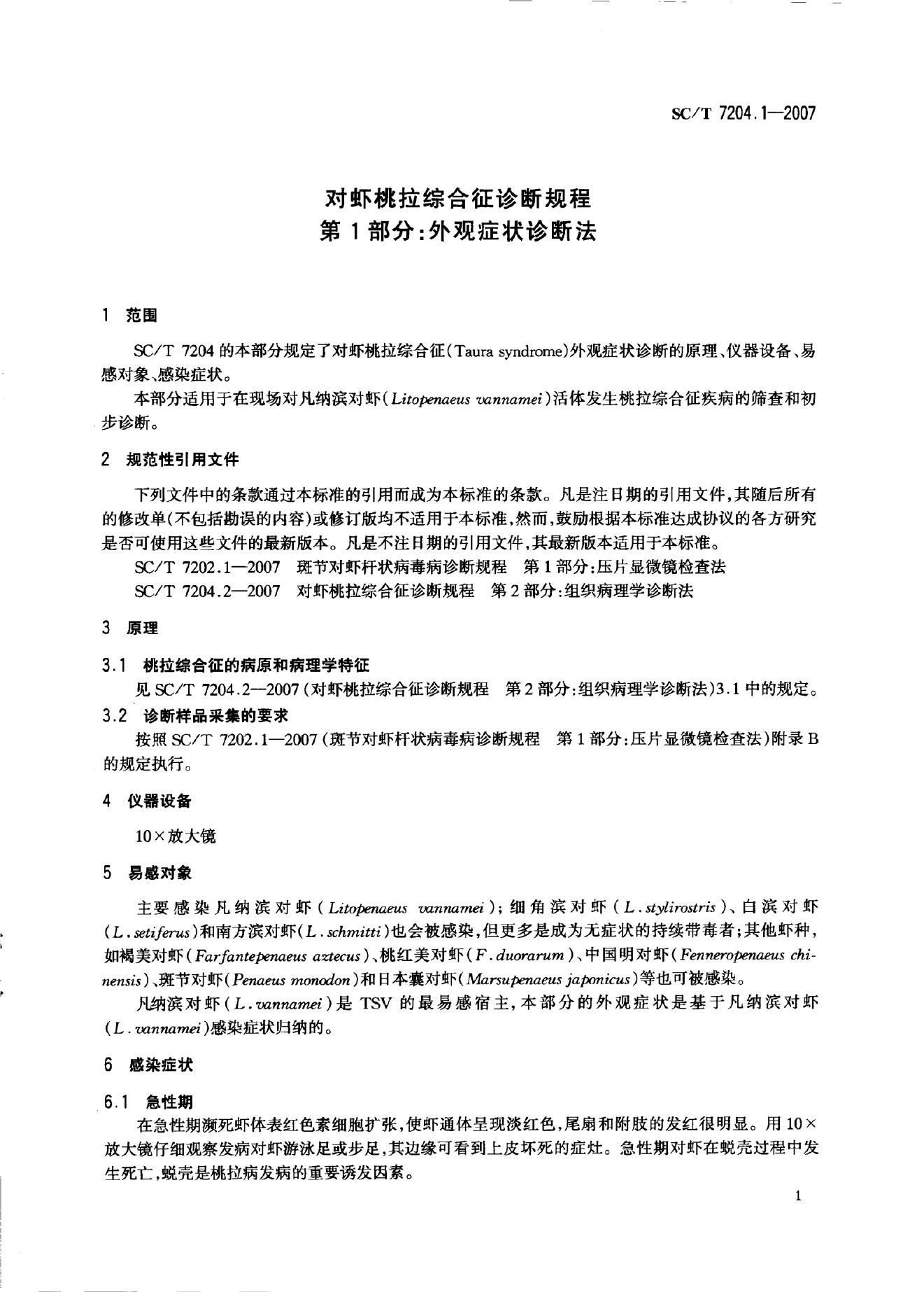SC/T 7204.1-2007 对虾桃拉综合征诊断规程 第1部分:外观症状诊断法