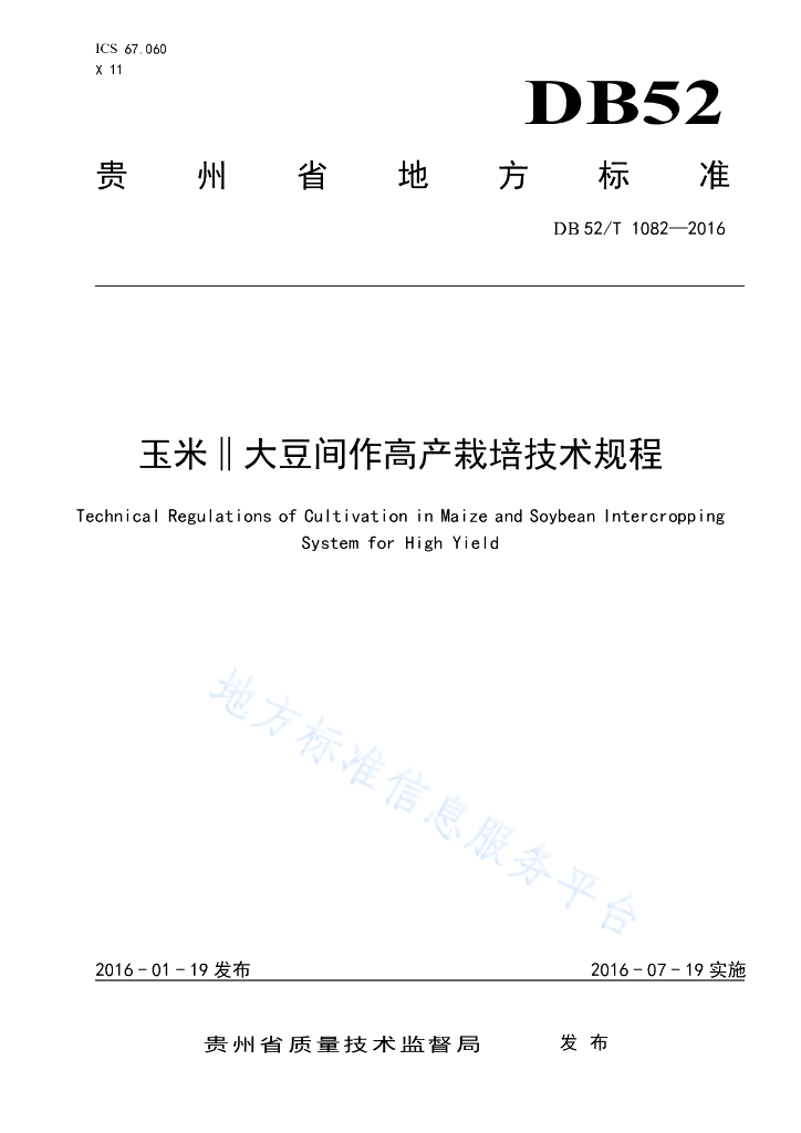 DB52/T 1082-2016 玉米‖大豆间作高产栽培技术规程