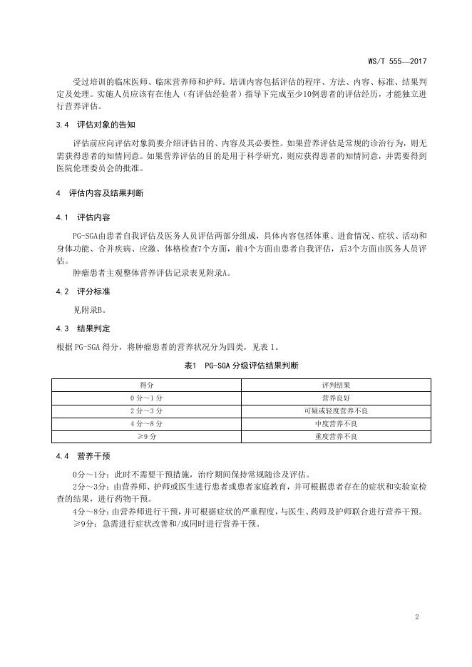 WS/T 555-2017 肿瘤患者主观整体营养评估