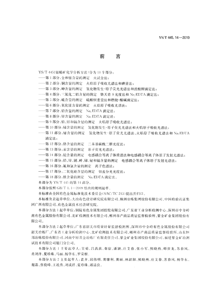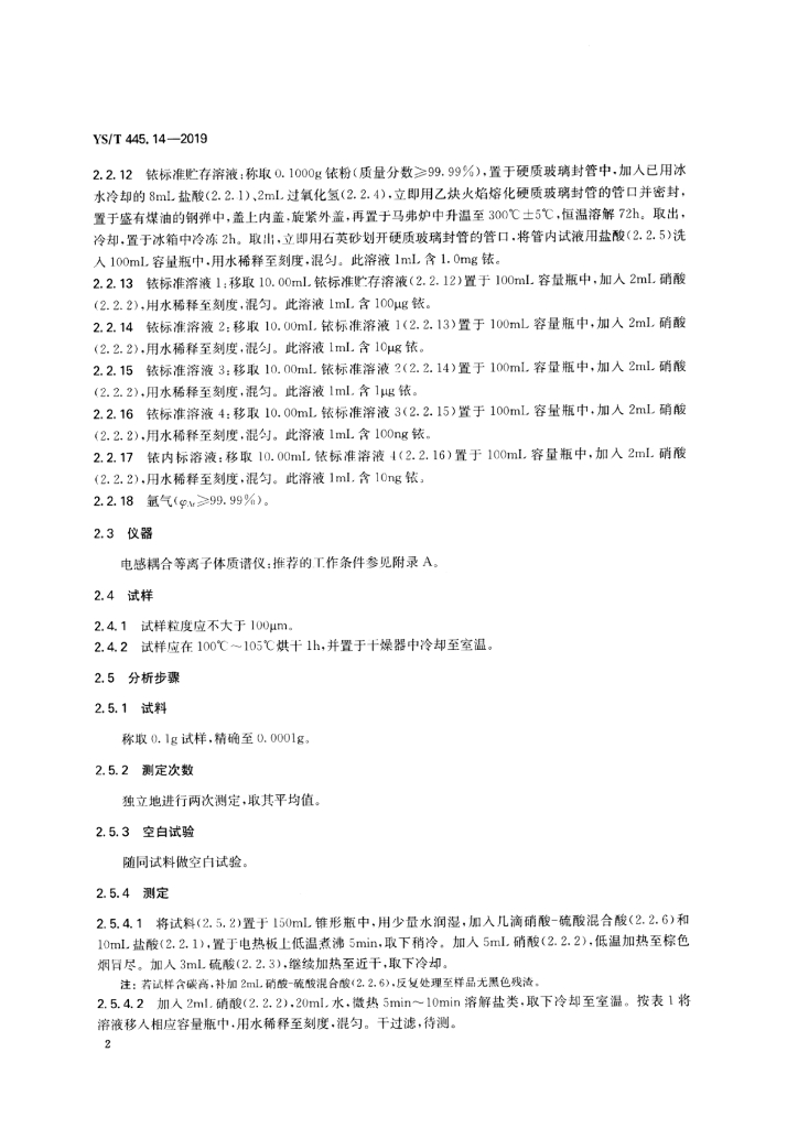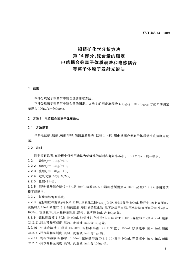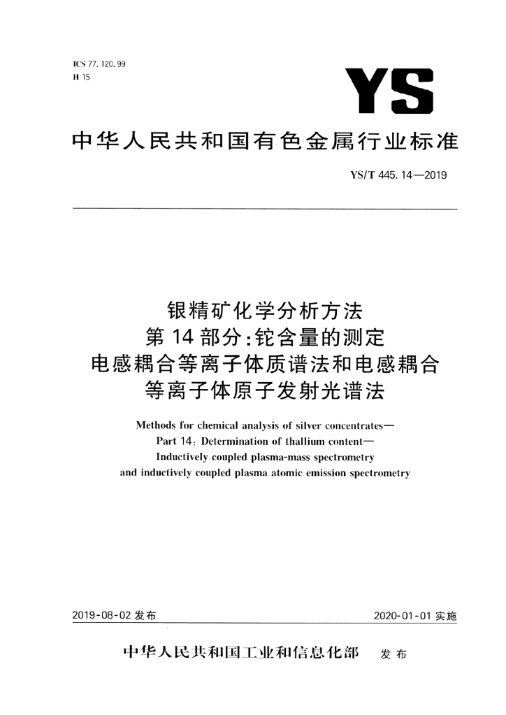 YS/T 445.14-2019 银精矿化学分析方法 第14部分:铊含量的测定 电感耦合等离子体质谱法和电感耦合等离子体原子发射光谱法