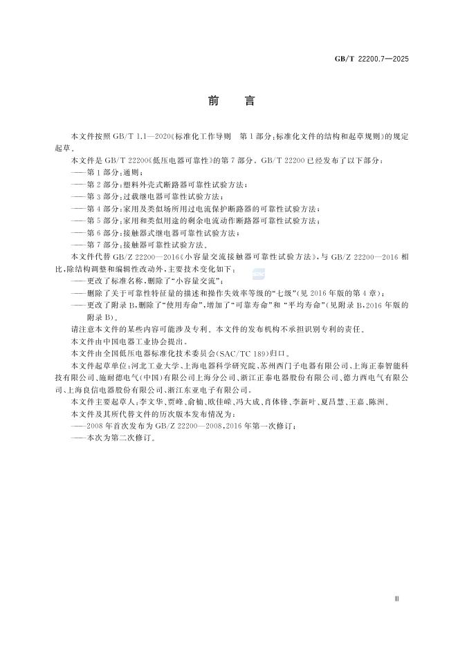 GB/T 22200.7-2025 低压电器可靠性 第7部分:接触器可靠性试验方法