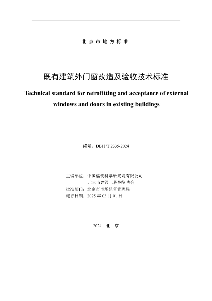 DB11/T 2335-2024 既有建筑外门窗改造及验收技术标准