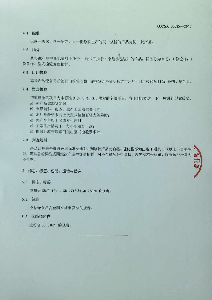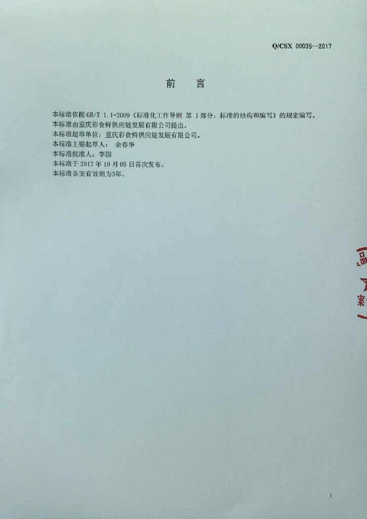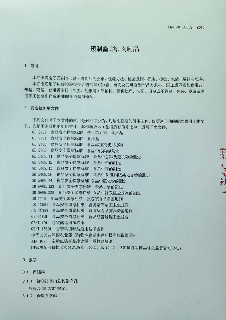 Q/CSX 0003S-2017 预制畜(禽)肉制品