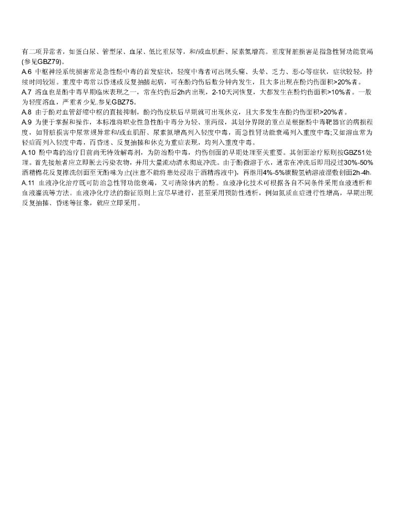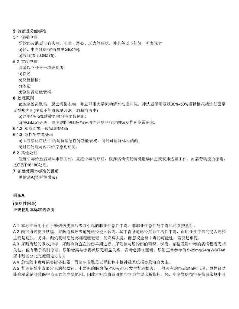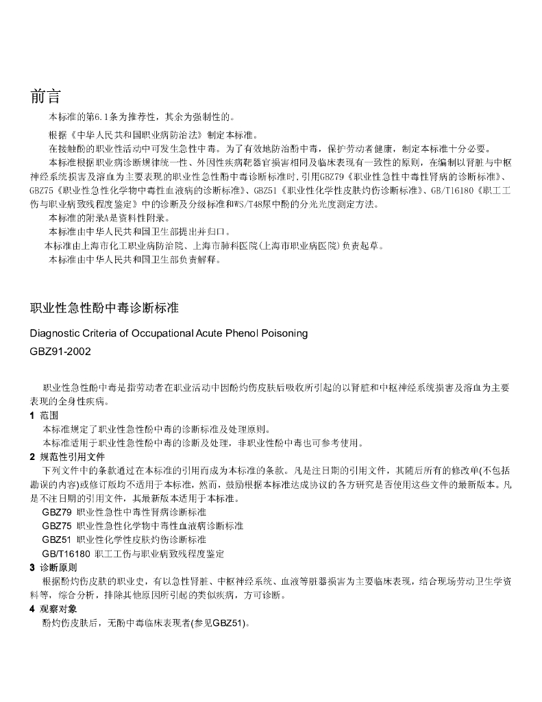 GBZ 91-2002 职业性急性酚中毒诊断标准