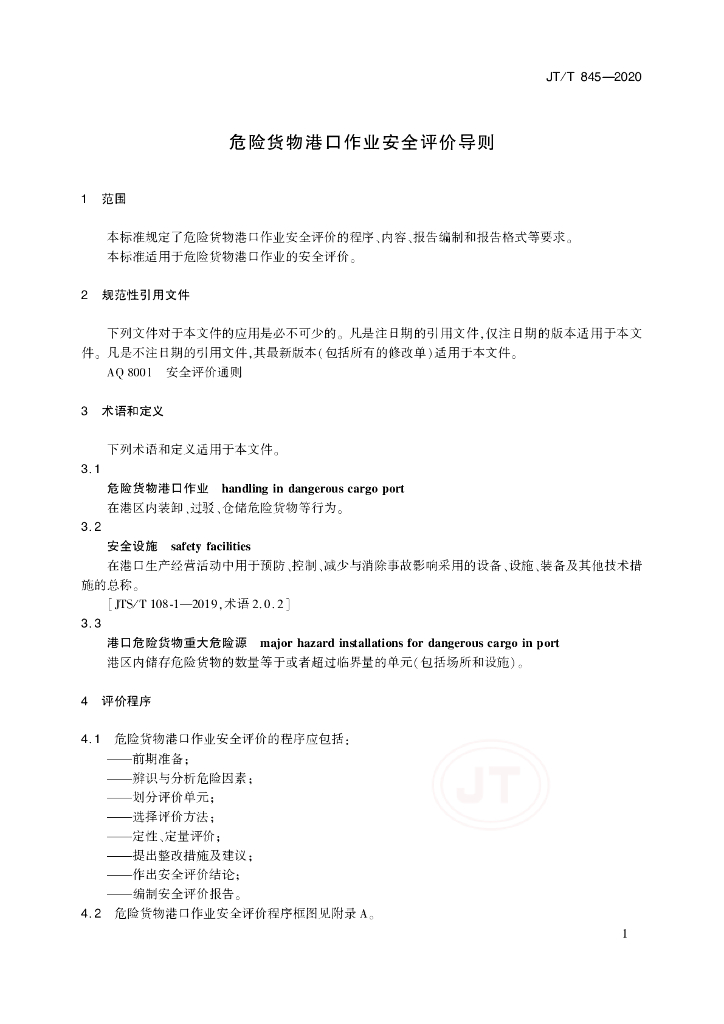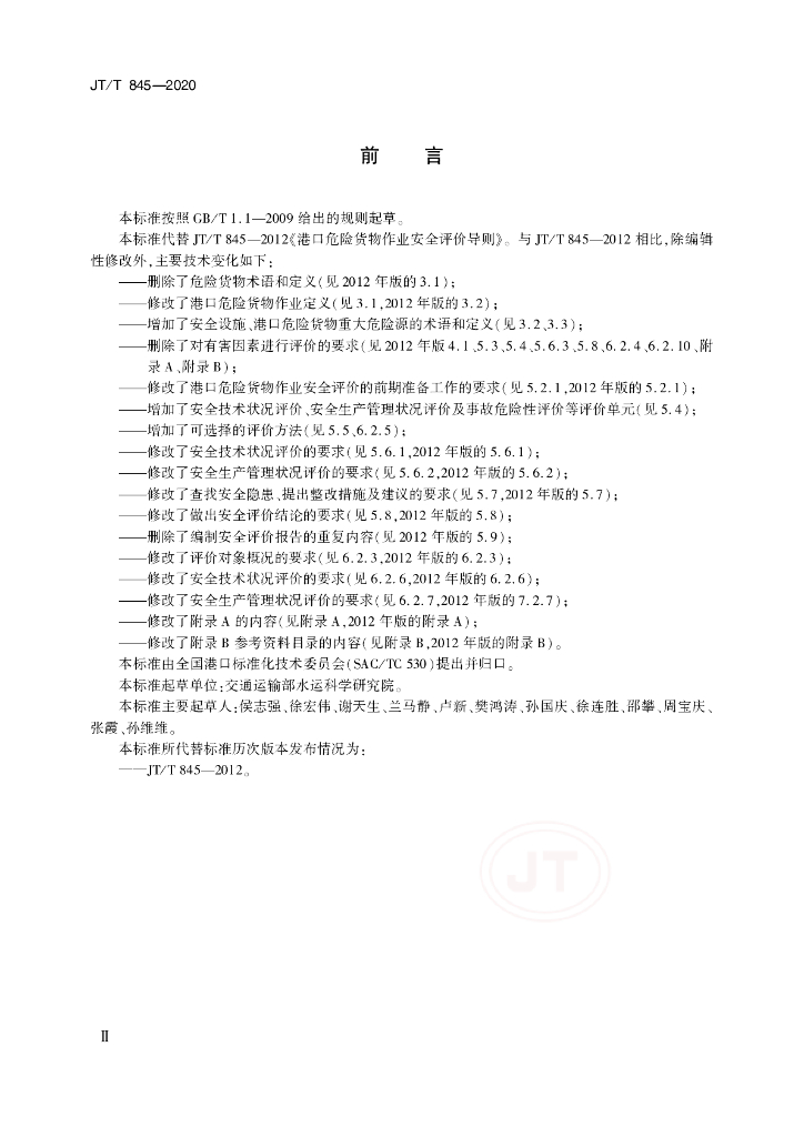 JT/T 845-2020 危险货物港口作业安全评价导则