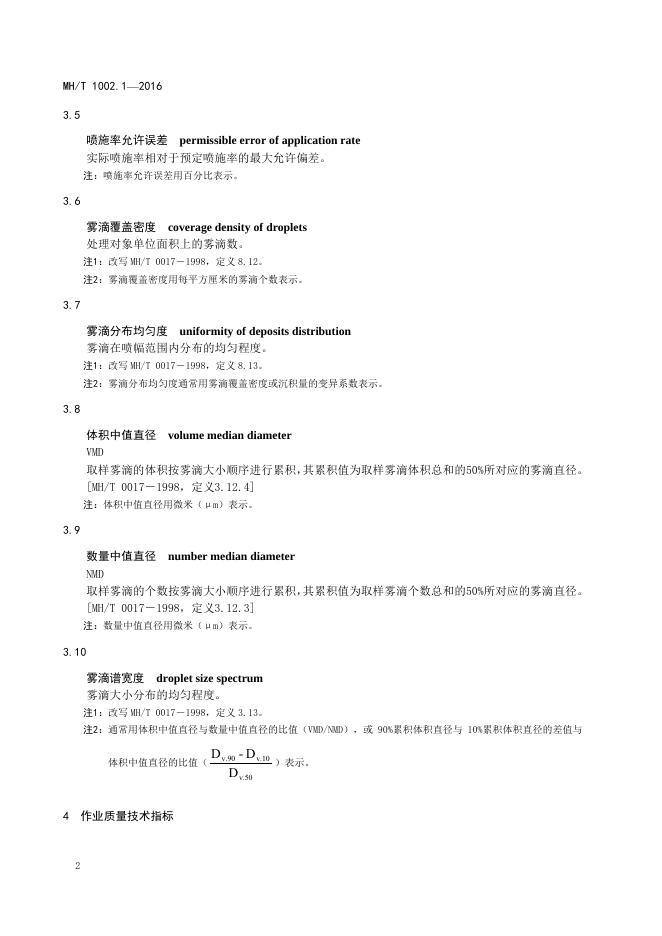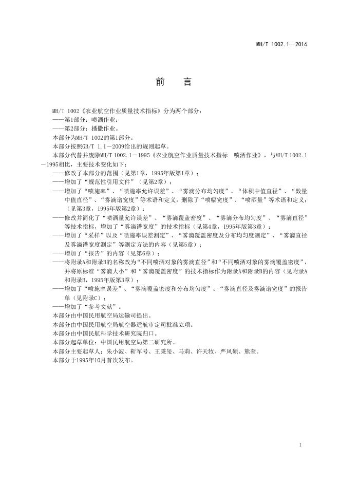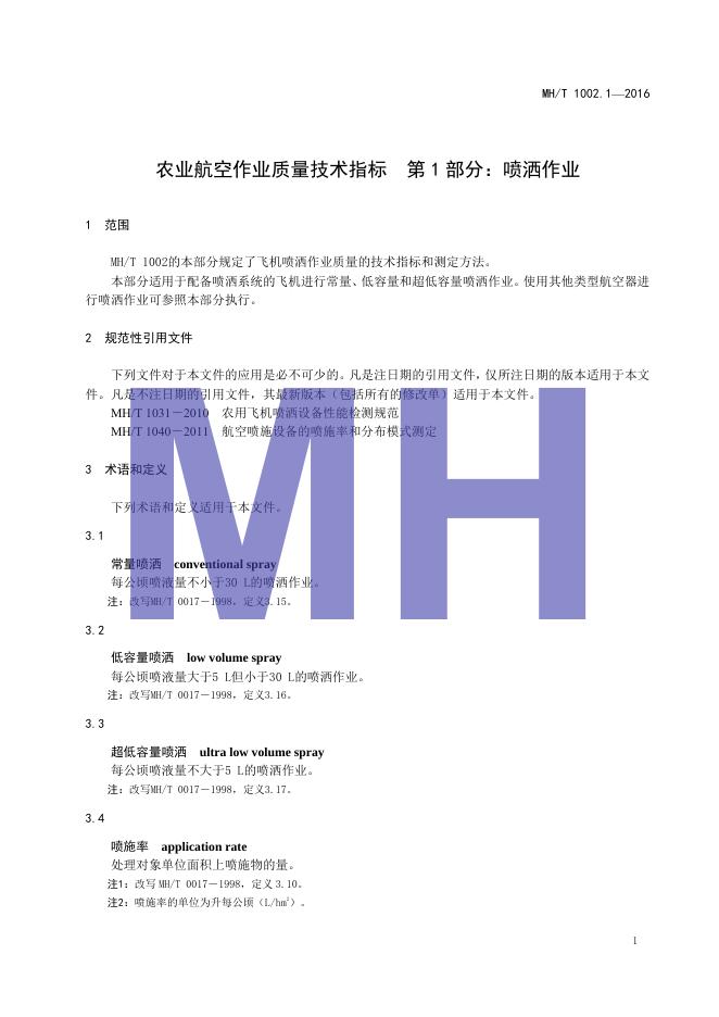 MH/T 1002.1-2016 农业航空作业质量技术指标 第1部分:喷洒作业