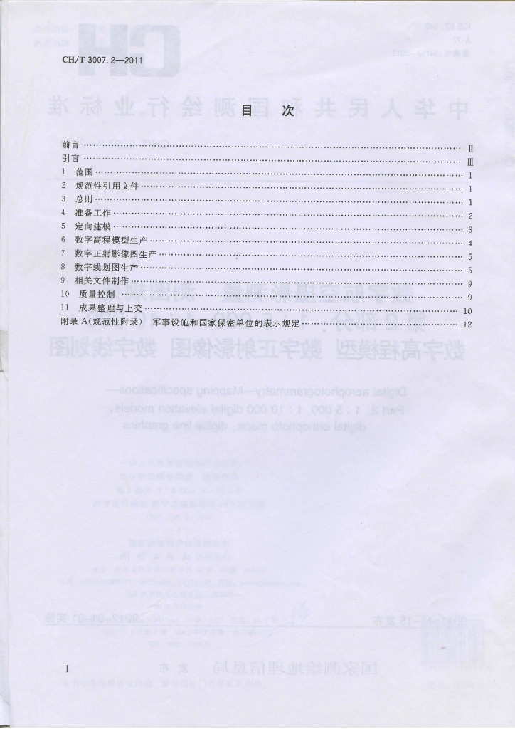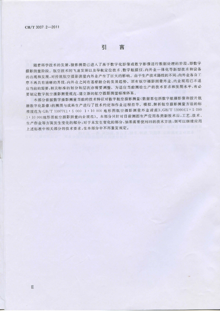 CH/T 3007.2-2011 数字航空摄影测量 测图规范 第2部分:1:5 000 1:10 000数字高程模型 数字正射影像图 数字线划图