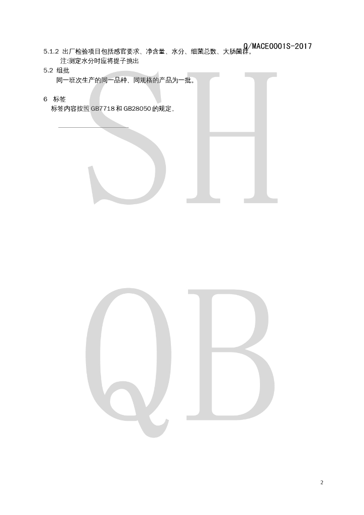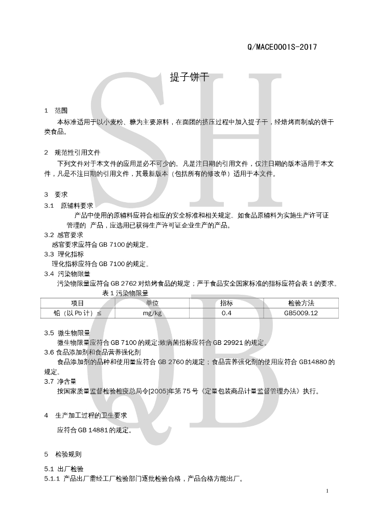 Q/MACE 0001S-2017 提子饼干