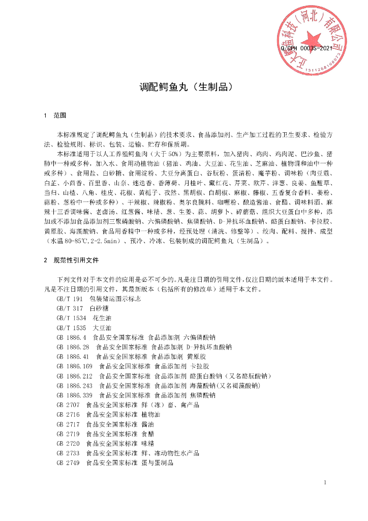 Q/CPH 0003S-2021 调配鳄鱼丸(生制品)