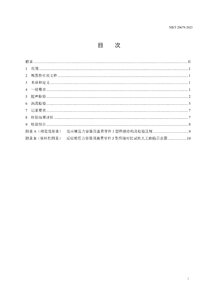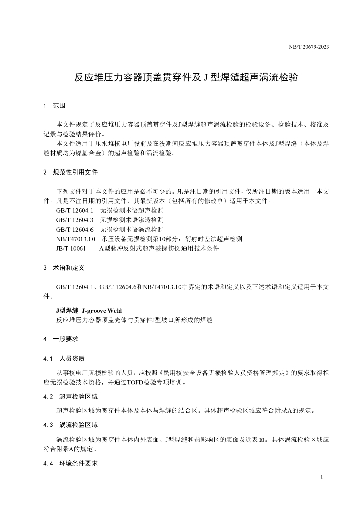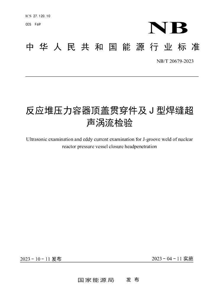 NB/T 20679-2023 反应堆压力容器顶盖贯穿件 J 型焊缝超声及涡流检验