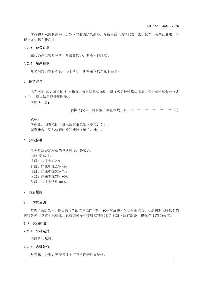 DB54/T 0507-2025 油菜霜霉病防治技术规程