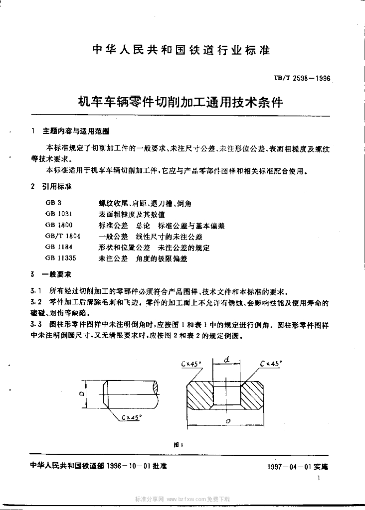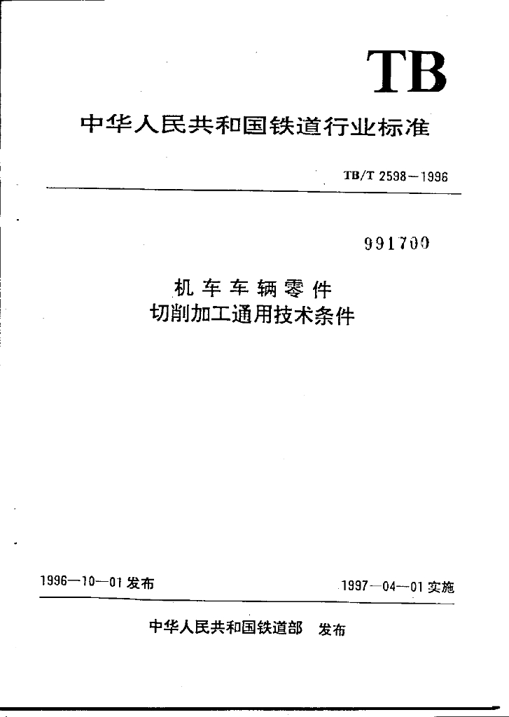 TB/T 2598-1996 机车车辆零件切削加工通用技术条件