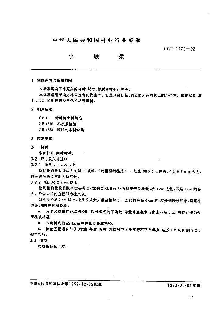 LY/T 1079-1992 小原条