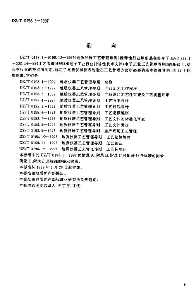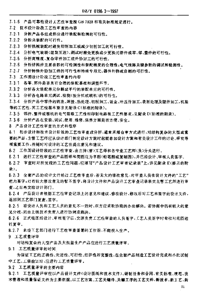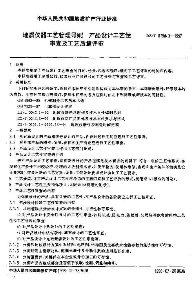 DZ/T 0198.3-1997 地质仪器工艺管理导则 产品设计工艺性审查及工艺质量评审