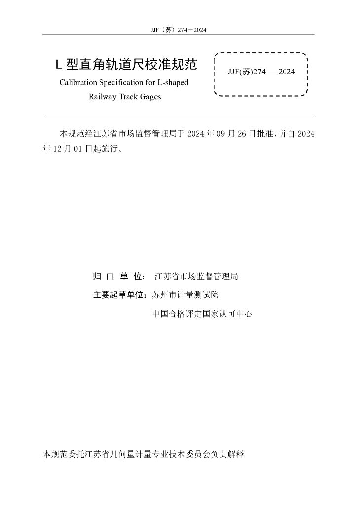 JJF(苏)274-2024 L型直角轨道尺校准规范