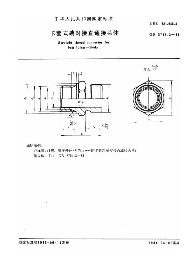 GB/T 3754.2-1983 卡套式端对接直通接头体