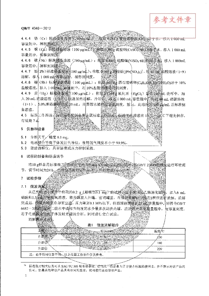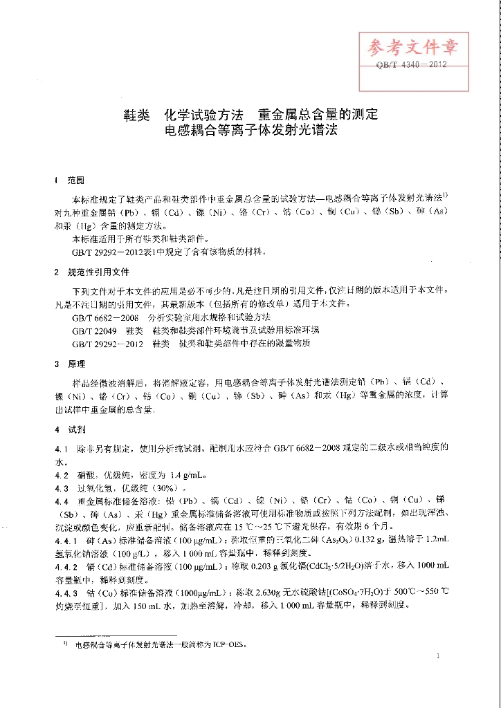 QB/T 4340-2012 鞋类化学试验方法重金 属总含量的测定电感耦合等离子体发射光谱法
