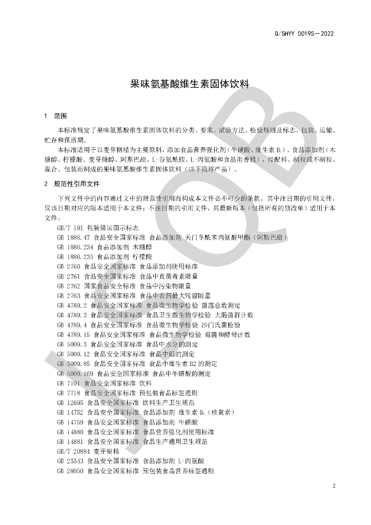 Q/SHYY 0019S-2022 果味氨基酸维生素固体饮料
