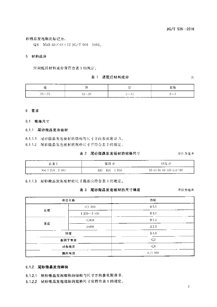 JG/T 506-2016 尾砂微晶发泡板材及砌块