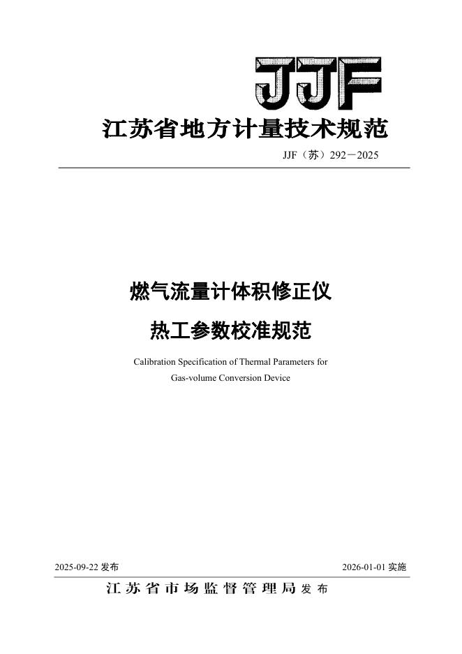 JJF(苏)292-2025 燃气流量计体积修正仪热工参数校准规范