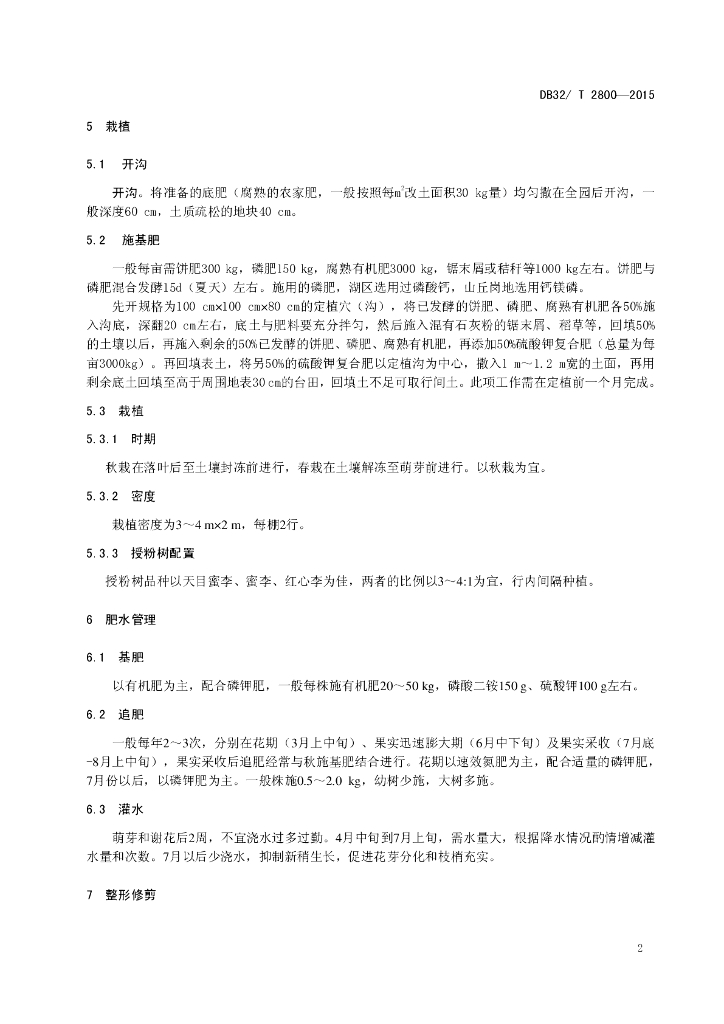 DB32/T 2800-2015 槜李设施栽培技术规程