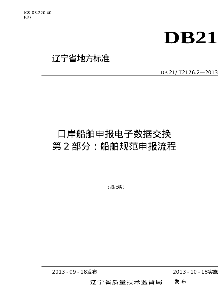 DB21/T 2176.2-2013 口岸船舶申报电子数据交换 第2部分:船舶规范申报流程