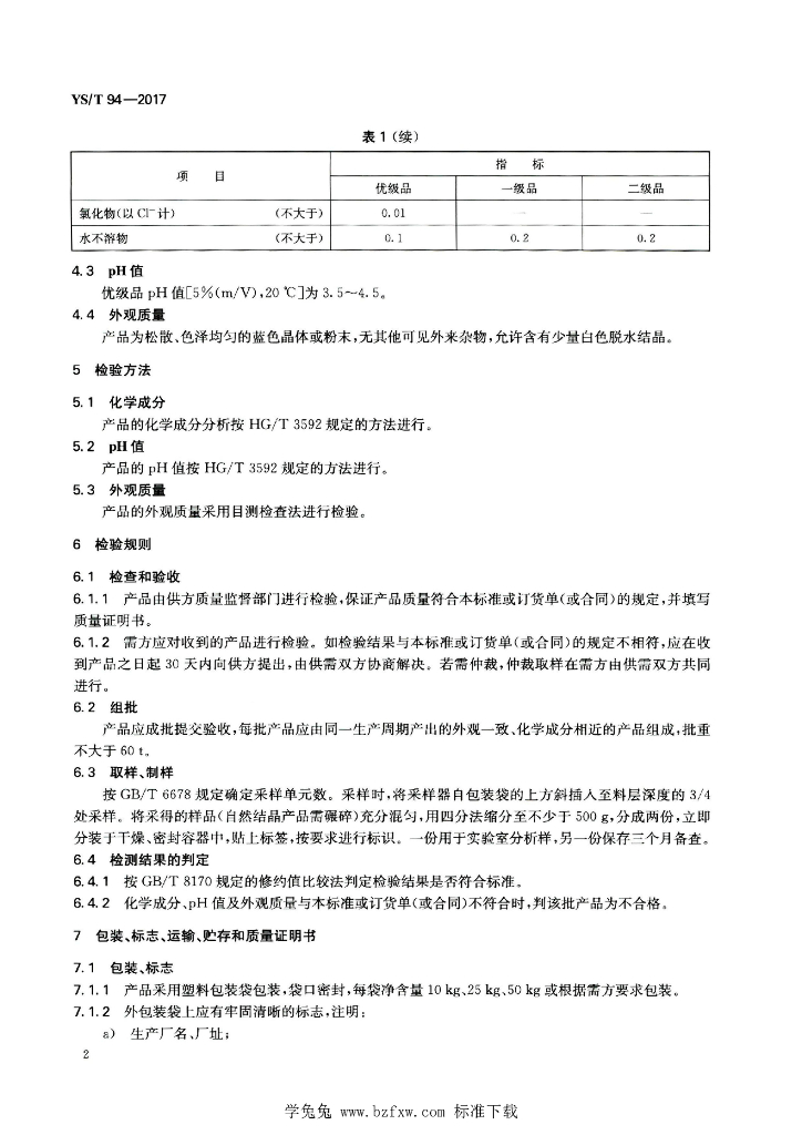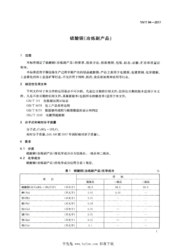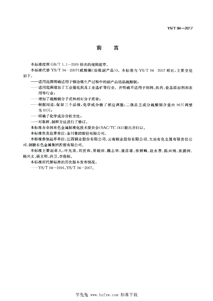 YS/T 94-2017 硫酸铜(冶炼副产品)