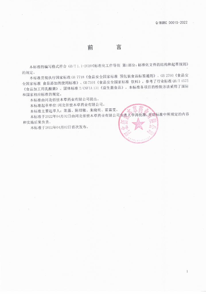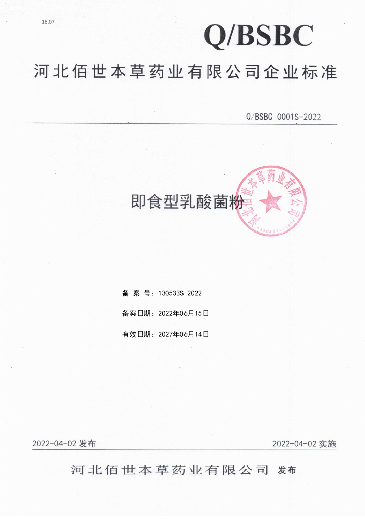 Q/BSBC 0001S-2022 即食型乳酸菌粉