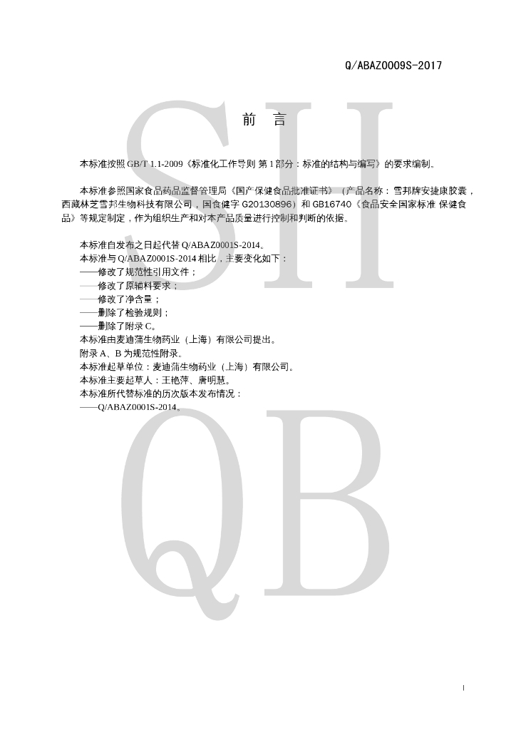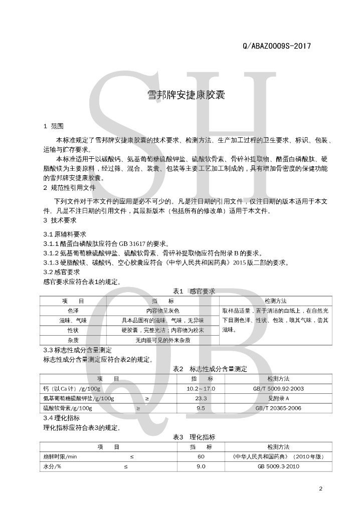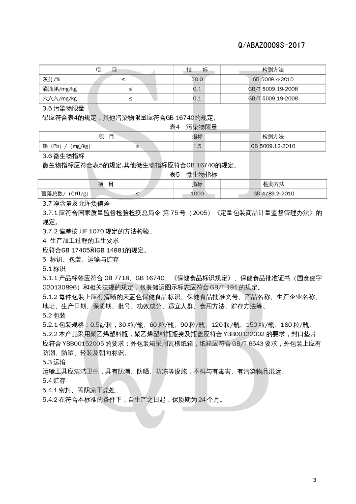 Q/ABAZ 0009S-2017 雪邦牌安捷康胶囊