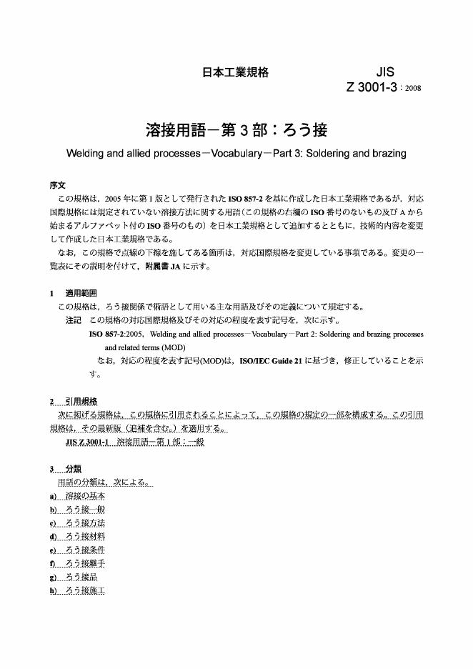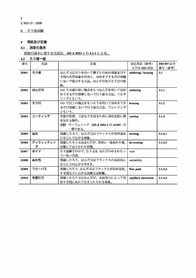 JIS Z3001-3-2008 焊接和相关工艺 词汇 第3部分:软钎焊