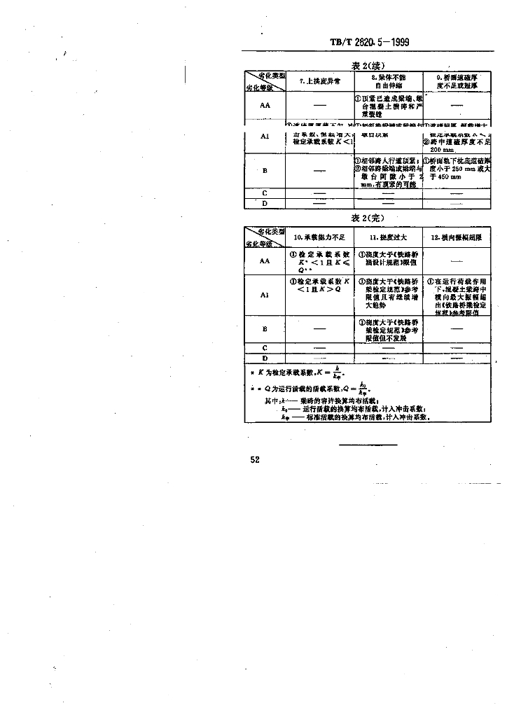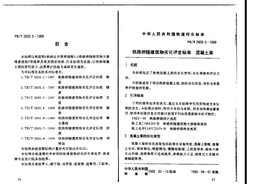 TB/T 2820.5-1999 铁路桥隧建筑物劣化评定标准 混凝土梁