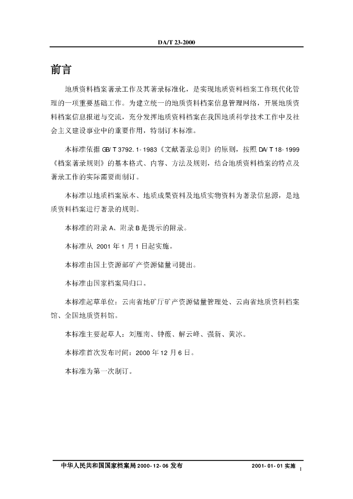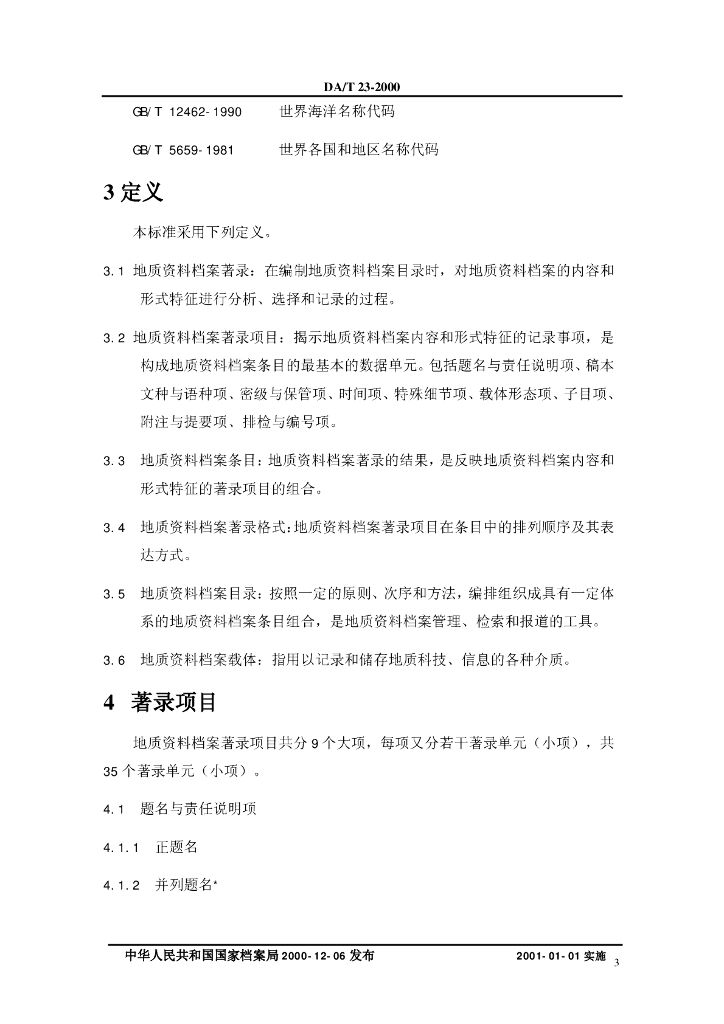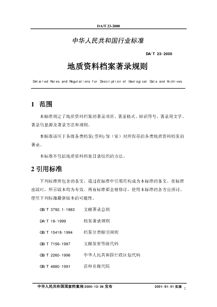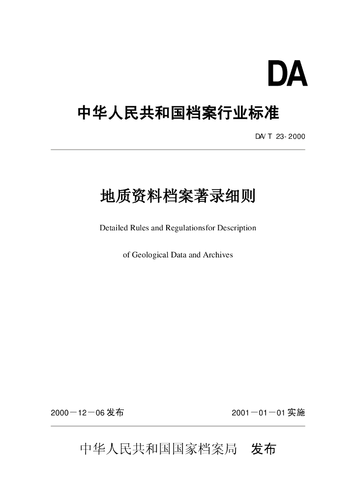 DA/T 23-2000 地质资料档案著录细则