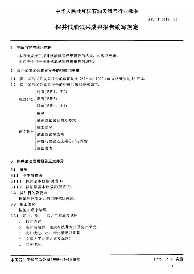 SY/T 5718-1995 探井试油试采成果报告编写规定