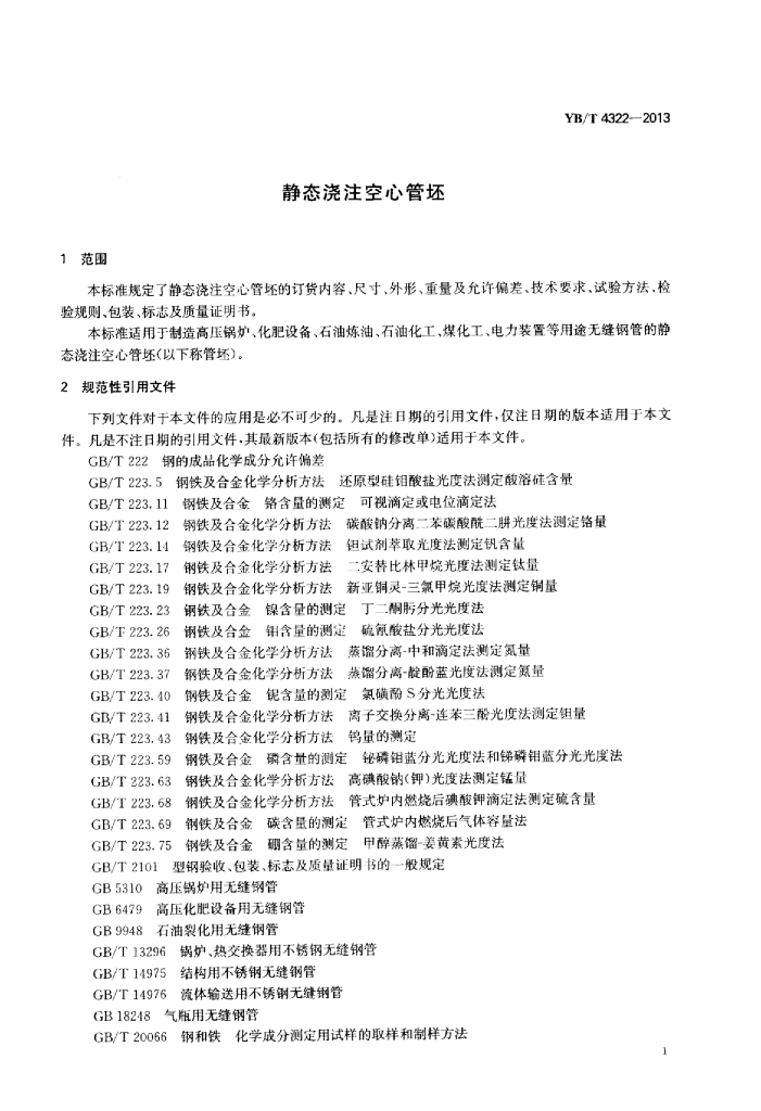 YB/T 4322-2013 静态浇注空心管坯