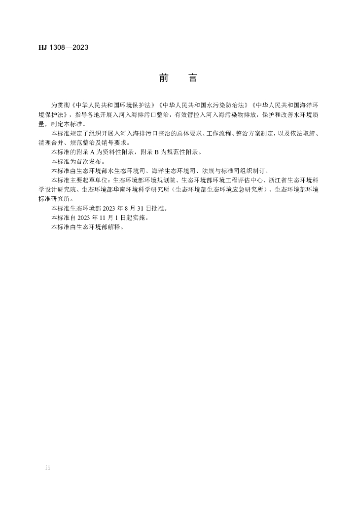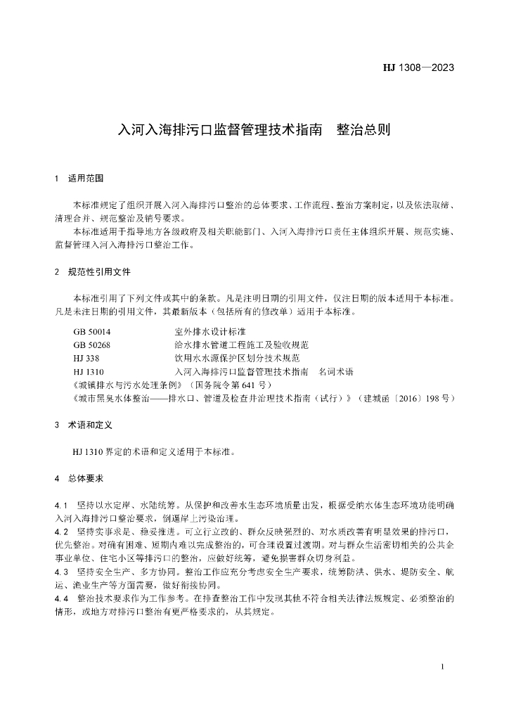 HJ 1308-2023 入河入海排污口监督管理技术指南 整治总则