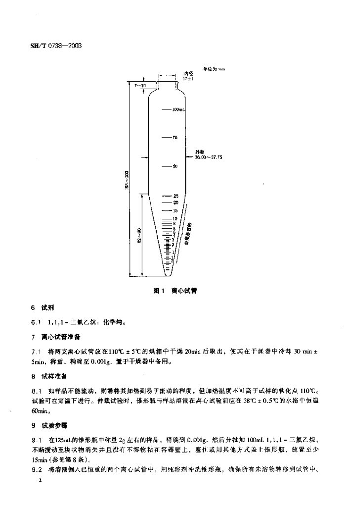 SH/T 0738-2003 聚合物改性沥青1、1、1-三氯乙烷溶解度测定法