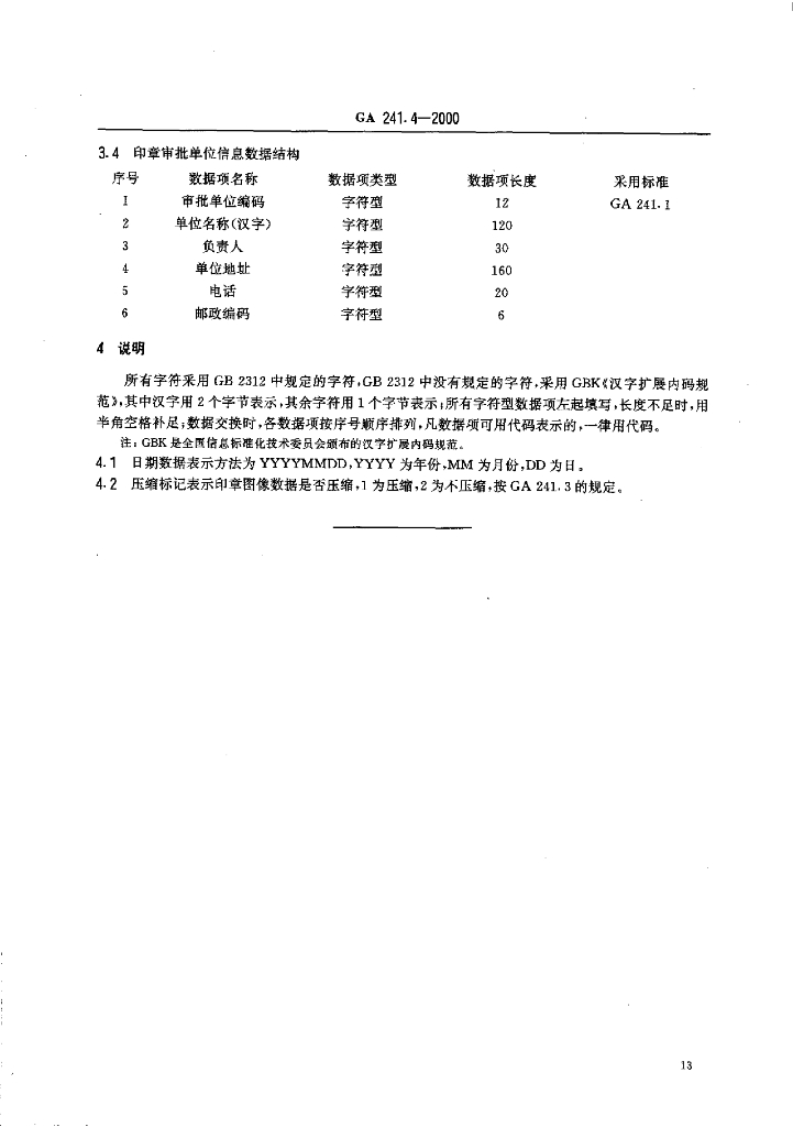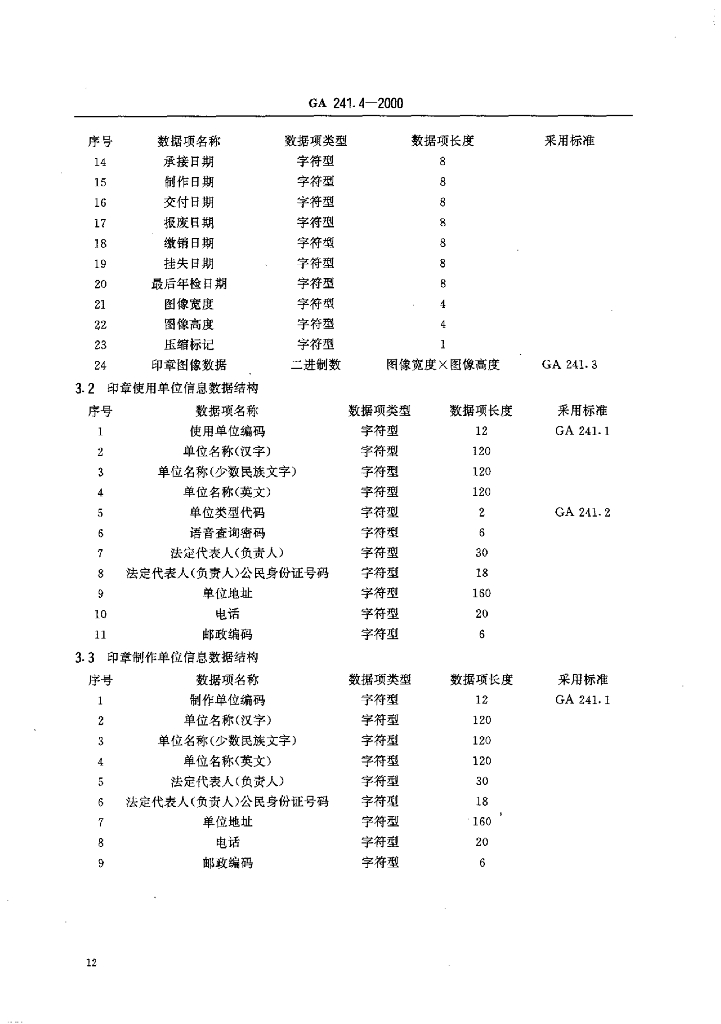 GA 241.4-2000 印章治安管理信息系统 第4部分:数据结构