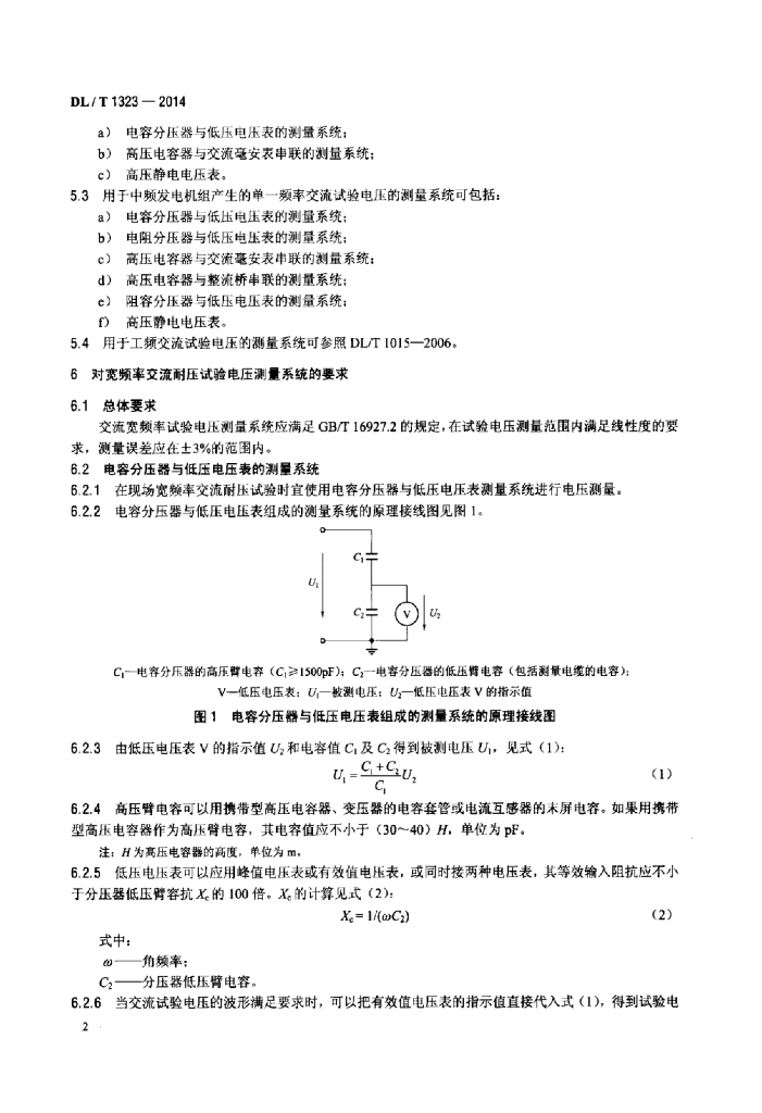 DL/T 1323-2014 现场宽频率交流耐压试验电压测量导则