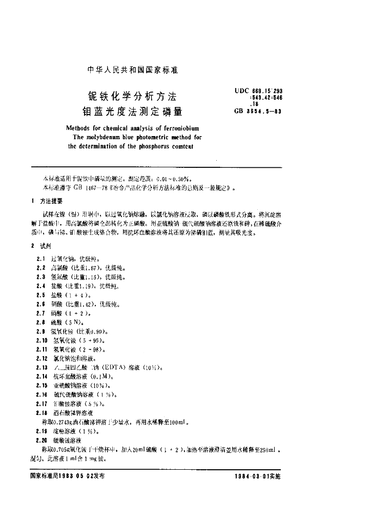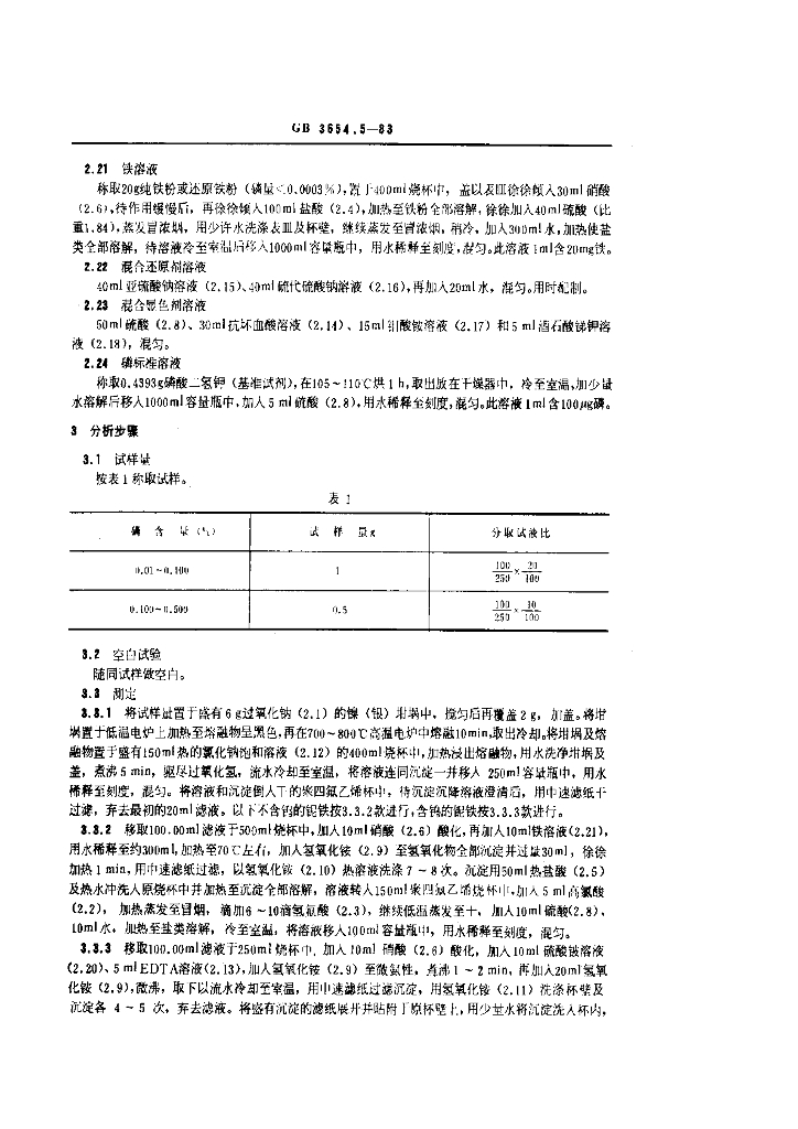 GB/T 3654.5-1983 铌铁化学分析方法 钼蓝光度法测定磷量