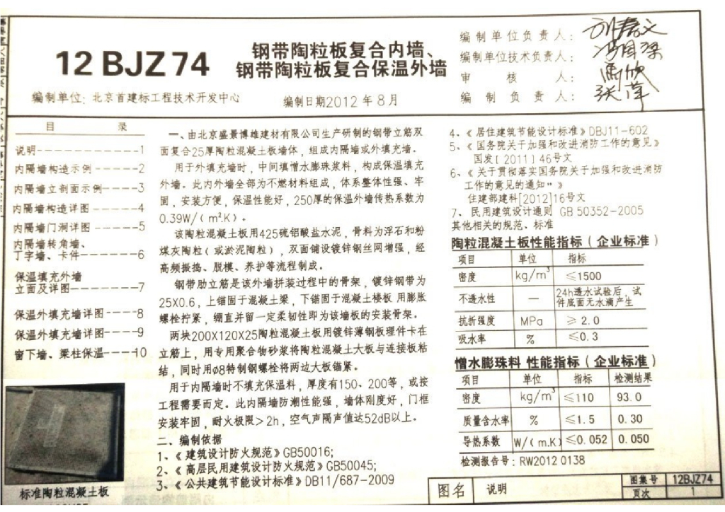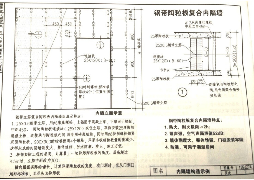 12BJZ74 钢带陶粒板复合内墙、钢带陶粒板复合保温外墙图集