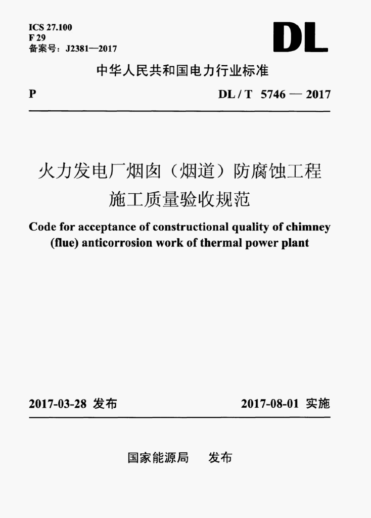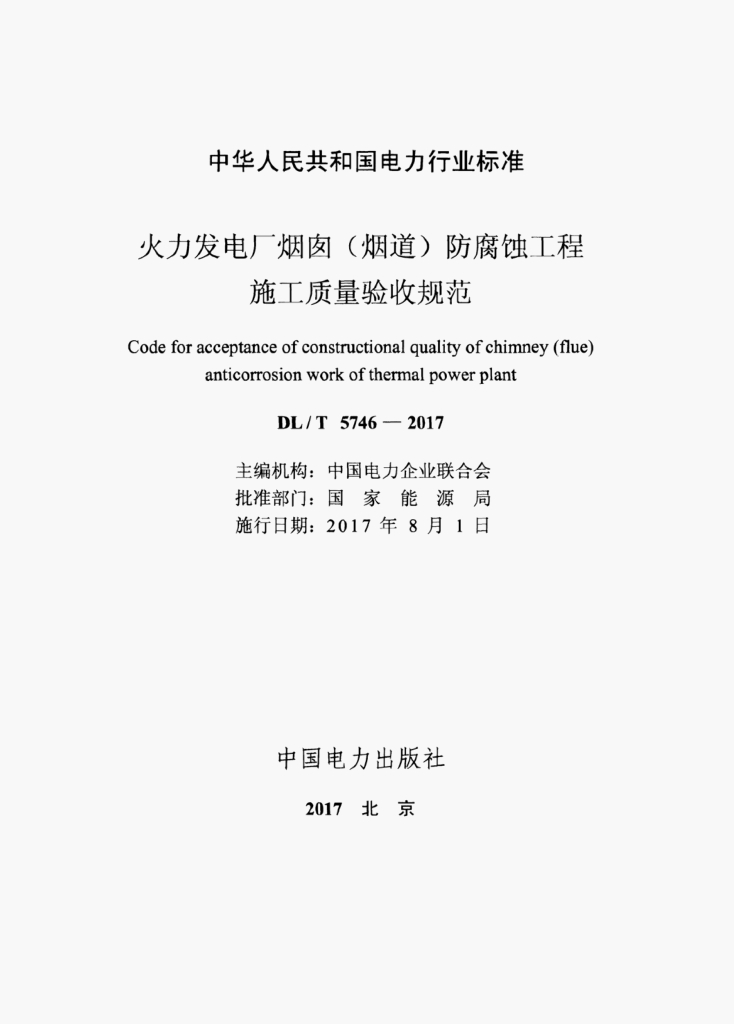 DL/T 5746-2017 火力发电厂烟囱(烟道)防腐蚀工程施工质量验收规范