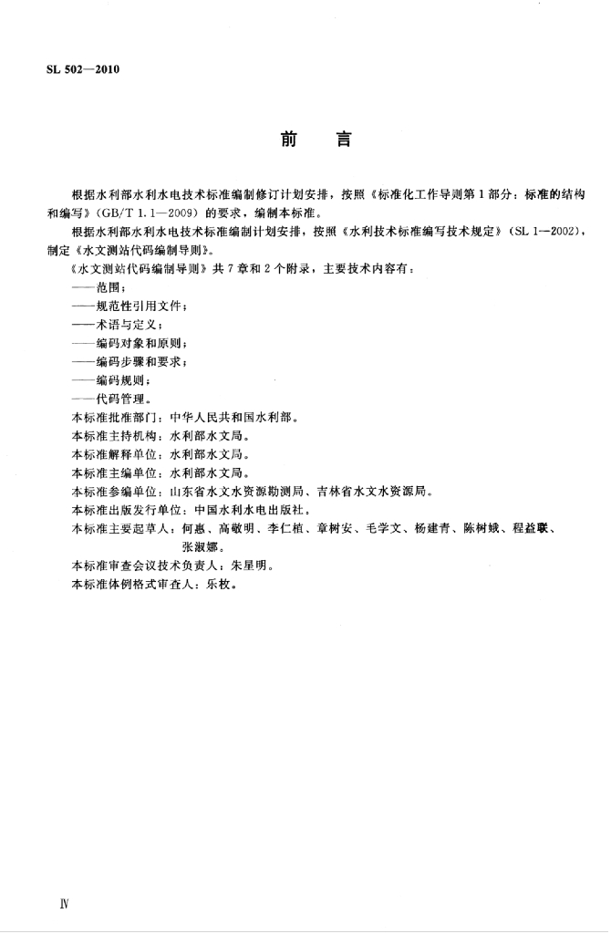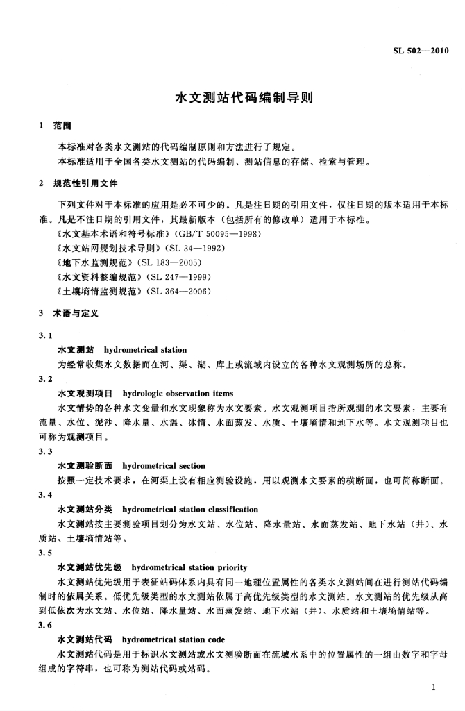 SL 502-2010 水文测站代码编制导则