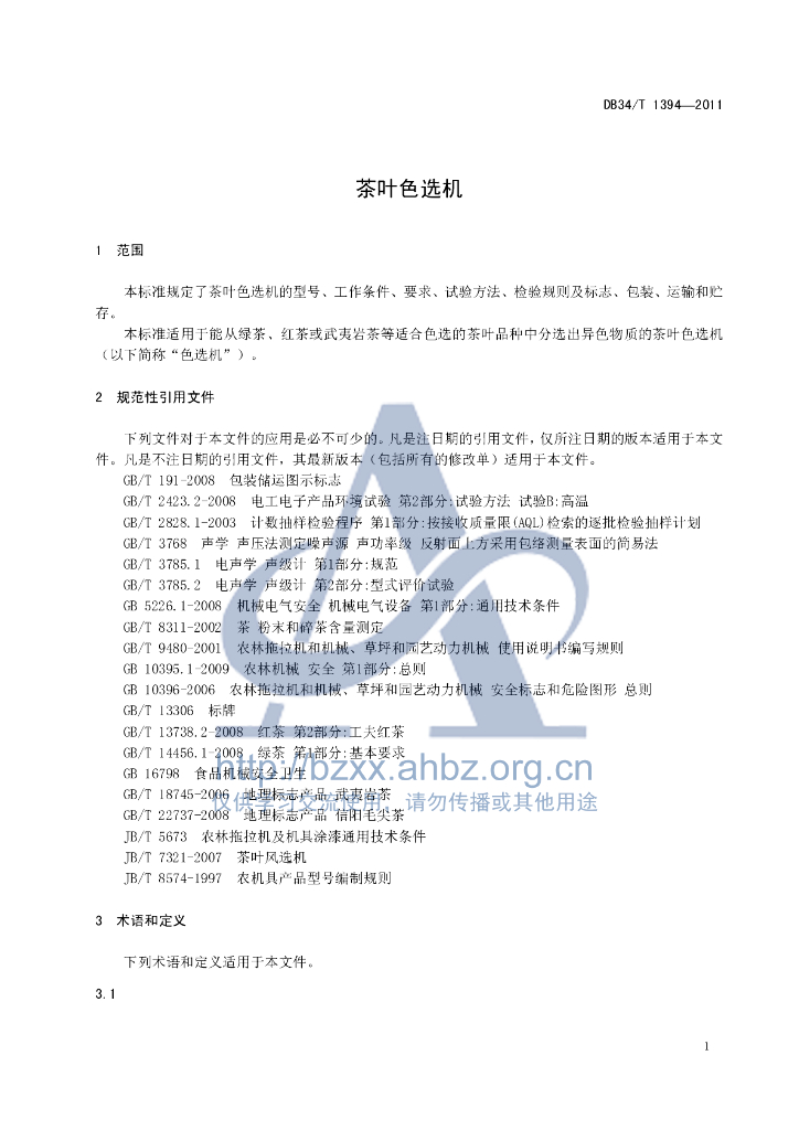 DB34/T 1394-2011 茶叶色选机
